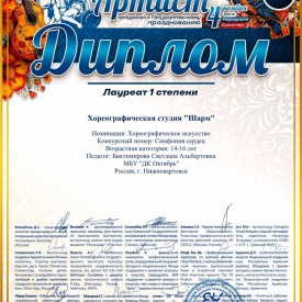 Лауреат I степени – хореографическая студия «Шарм»: «Хореографическое искусство», смешанная группа.
