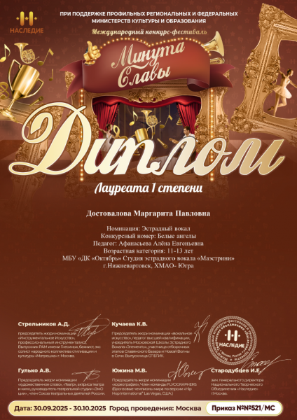 Лауреат I степени – Достовалова Маргарита: «Эстрадный вокал», 11-13 лет.
