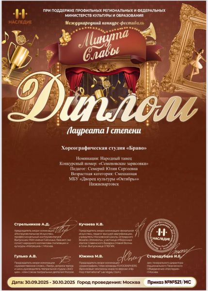 Лауреат I степени – хореографический коллектив «Браво»: «Народный танец», смешанная.