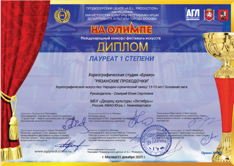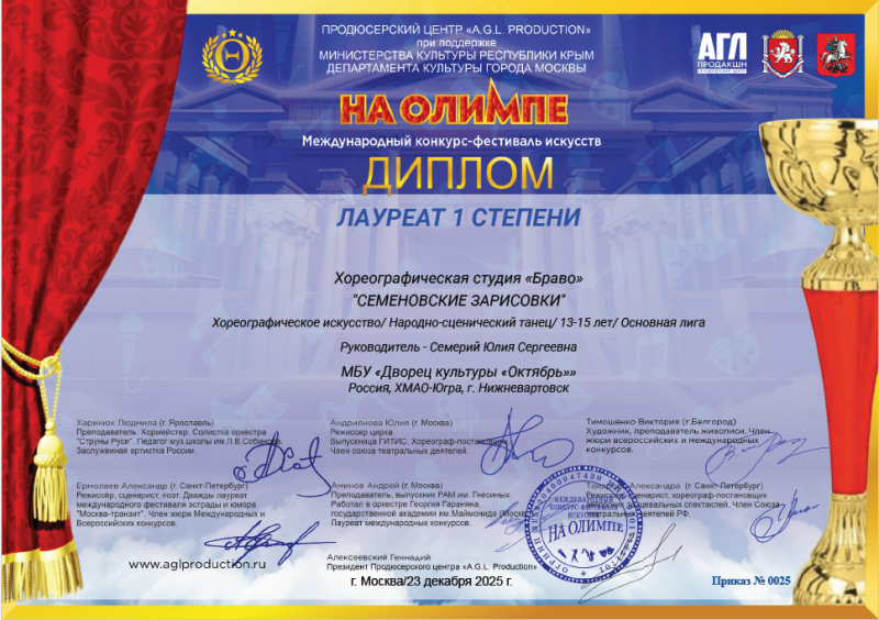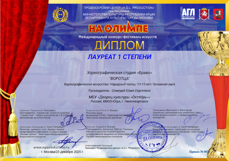 Лауреат I степени – хореографическая студия «Браво»: «Хореографическое искусство. Народно-сценический танец», 13-15 лет.