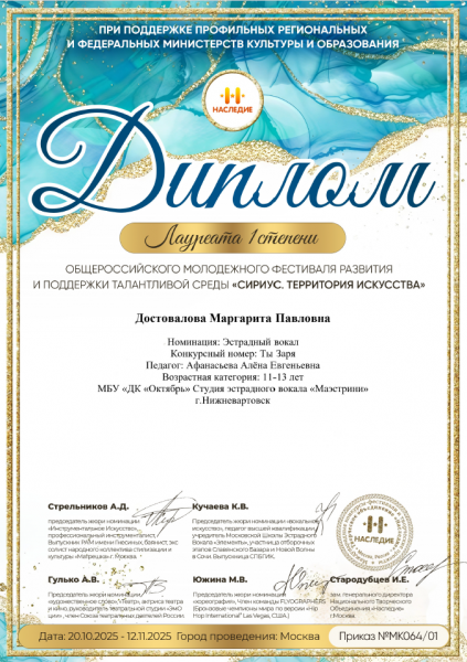 Общероссийский молодёжный фестиваль развития и поддержки талантливой среды «Сириус, Территория искусства»