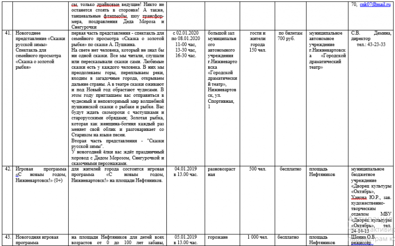План мероприятий учреждений культуры на период зимних каникул 2019-2020