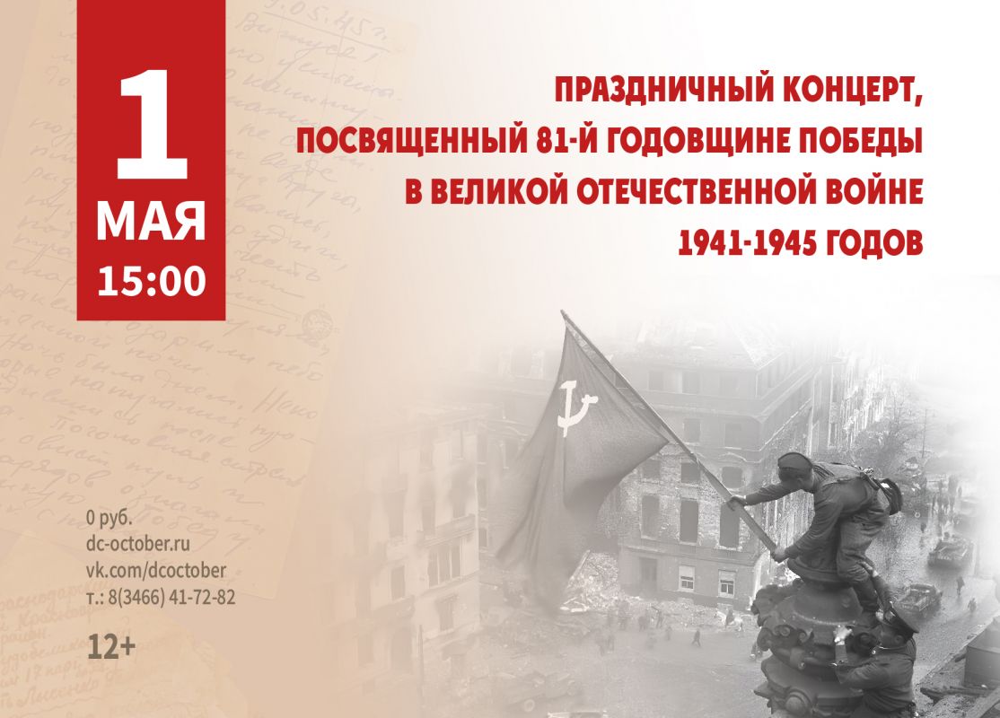 Приглашаем жителей и гостей города на праздничный концерт, посвященный 81-й годовщине Победы в Великой Отечественной войне.