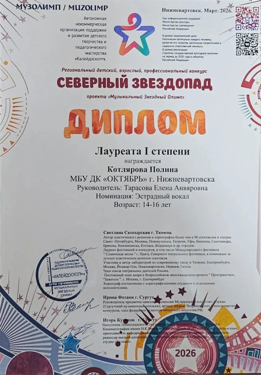 Региональный детский, взрослый профессиональный конкурс «Северный звездопад» проекта «Музыкальный Звёздный Олимп» при информационной поддержке Министерства культуры, Министерства просвещения РФ