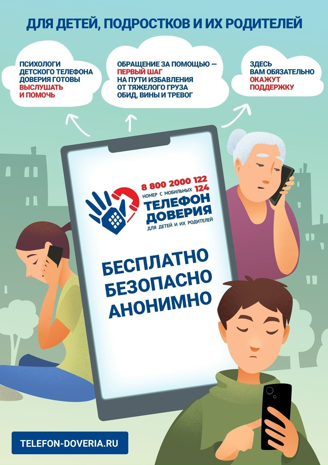 Единый общероссийский телефон доверия для детей, подростков и их родителей: 8-800-2000-122; 124