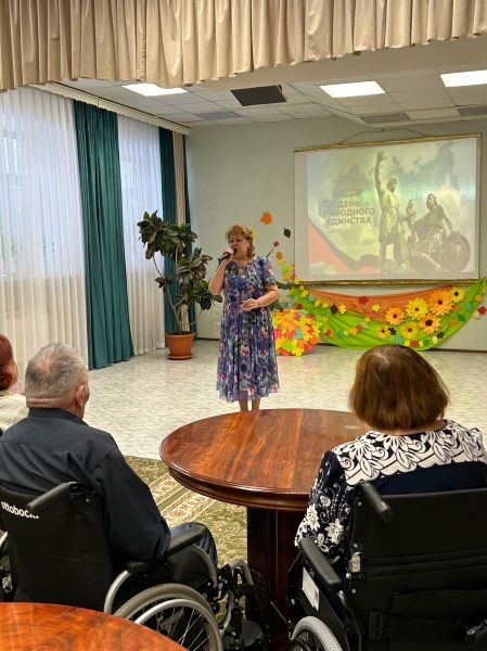 Университет старшего возраста «Новый старт»: класс хореографии «Позитив» и вокальный ансамбль «С песней по жизни» сегодня посетил Нижневартовский пансионат круглосуточного ухода с праздничным концертом ко Дню народного единства. Программа включала песни разных лет и была тепло принята зрителями, которые активно подпевали артистам.